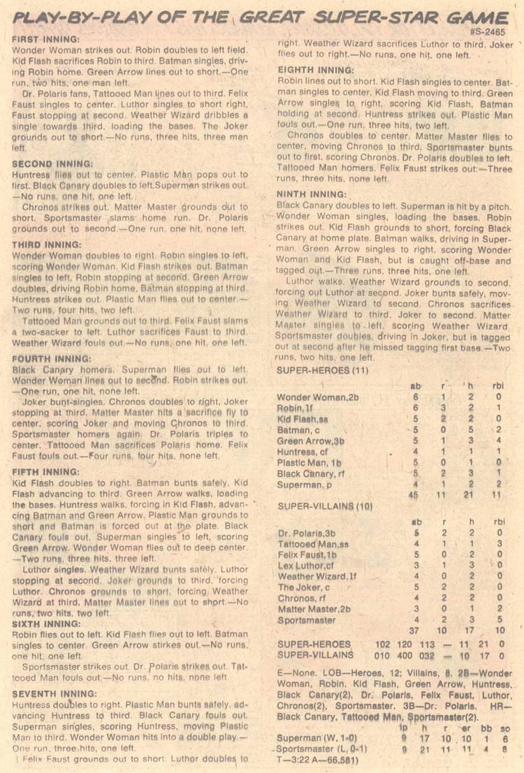 In fact, there is evidence that Bruce may have done just that! There are three instances I could find of Batman playing baseball in the comics. The first was on the cover of World’s Finest Comics, all the way back in 1941. We see Batman preparing to hit, with Robin catching. The second is from DC super-Stars issue 10 (1976). In this issue, the DC heroes (Batman, Wonder Woman, Superman, etc) are forced to play baseball against all of the DC villains. The issue shows Batman batting from the opposite side of the plate (a switch-hitter!), working out a tough 7-pitch walk to drive in a run with the bases loaded in the 9th. According to the play-by-play and box score from the end of the issue, Batman went 3-4 with an RBI walk and a sac-bunt. He also caught for the whole game. A pretty impressive line against superpowered villains! More recently, in issue 37 of a limited 2017 series written by Jewish comics writer Tom King, Batman and Superman are spending some bonding time together at the batting cages, where they both complain that even the fastest setting of a pitching machine is too easy, and later in the issue, they find a baseball field and Batman is able to get a hit off of Superman! So to answer the baseball question, I think it’s clear that if Bruce Wayne wanted to, he could try out and make just about any roster for the World Baseball Classic (especially if he agreed to fund some flashy new uniforms!).