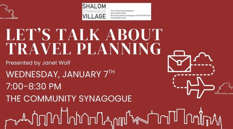 We are hoping these programs give you fun and exciting new ways to connect to your synagogue community. The Shalom Synagogue Village also provides the opportunity to meet and foster new relationships with members of other local synagogues, further deepening your connection to the synagogue community and the greater Port Washington area.